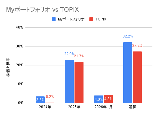 2026年1月にポートフォリオ内で上昇率が高かった銘柄TOP3は以下の3つでした。